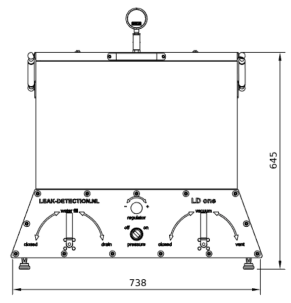 The LD one can be used in different ways. As a leak tester, after filling the tank with water and checking for air bubbles when the package is exposed to under-pressure. The desired vacuum level can be accurately set by means of the regulator (+/-50mbar). The machine can also be used without water for pressure tests for packages. For example altitude simulation for packages that are transported by airplane. In this case packages are being tested for a certain time exposed to a specific vacuum before breaking.